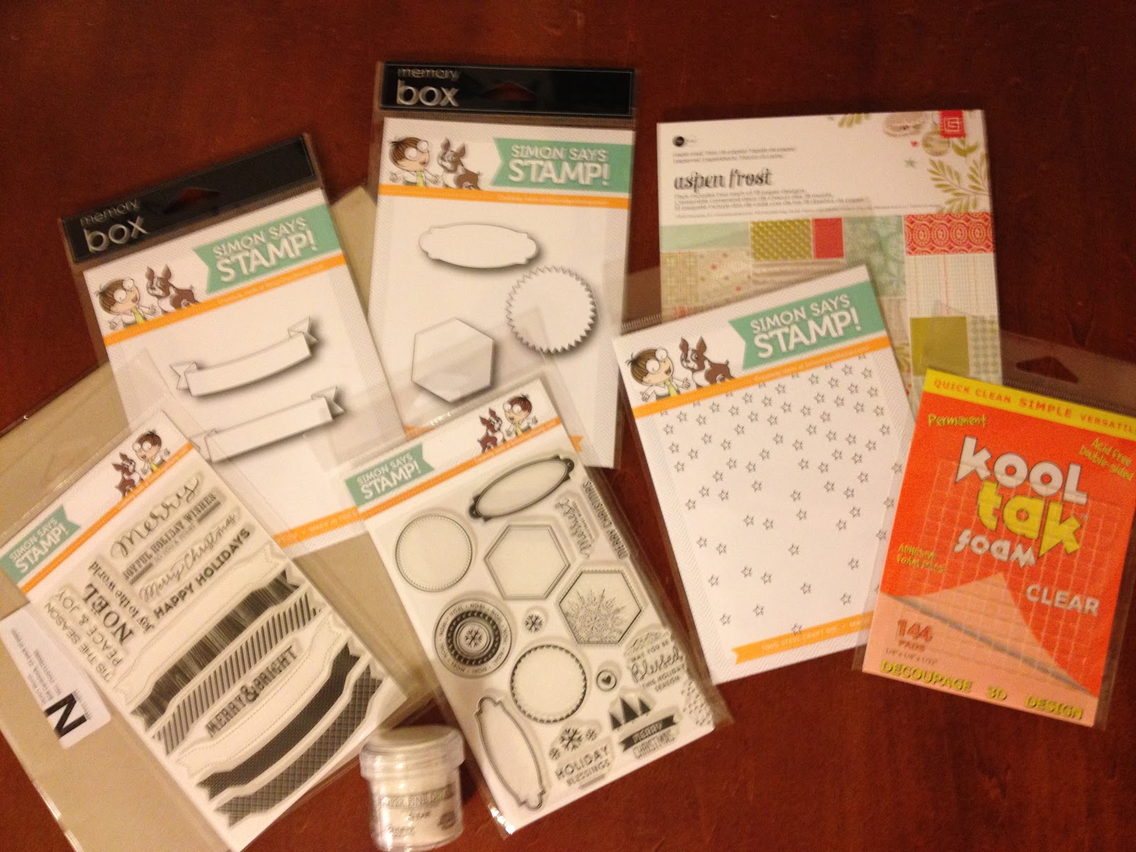 I got my order from Simon Says Stamp today. I purchased these supplies with the remainder of my birthday cash! Can't wait to play with all of these new things.